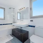 Tot de badkamerfaciliteiten behoren ook een apart toilet en een douche. Een haardroger en badlakens zijn inbegrepen voor extra comfort.